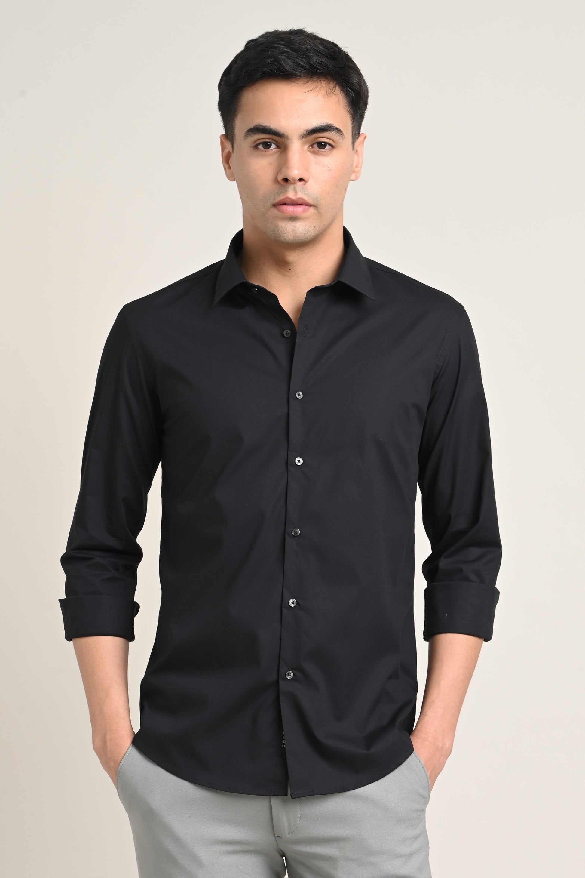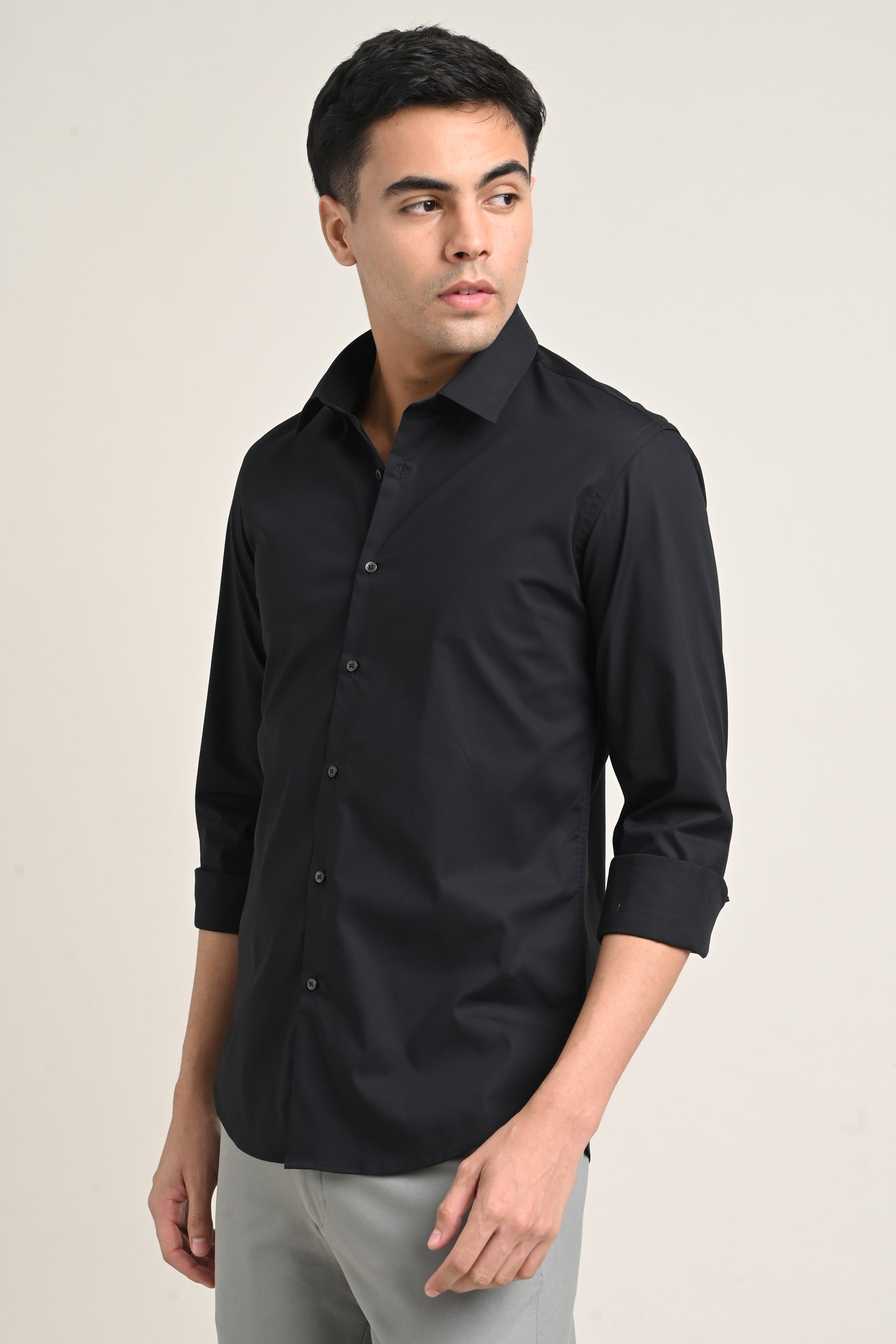 Premium Stretch Cotton Shirt – Jet Black